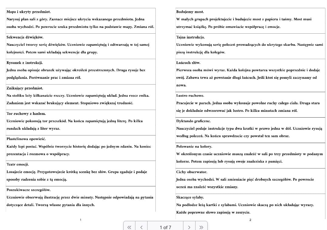 Gotowe pomysły na zabawy na zajęcia specjalistyczne- materiał edukacyjny w formie cyfrowej