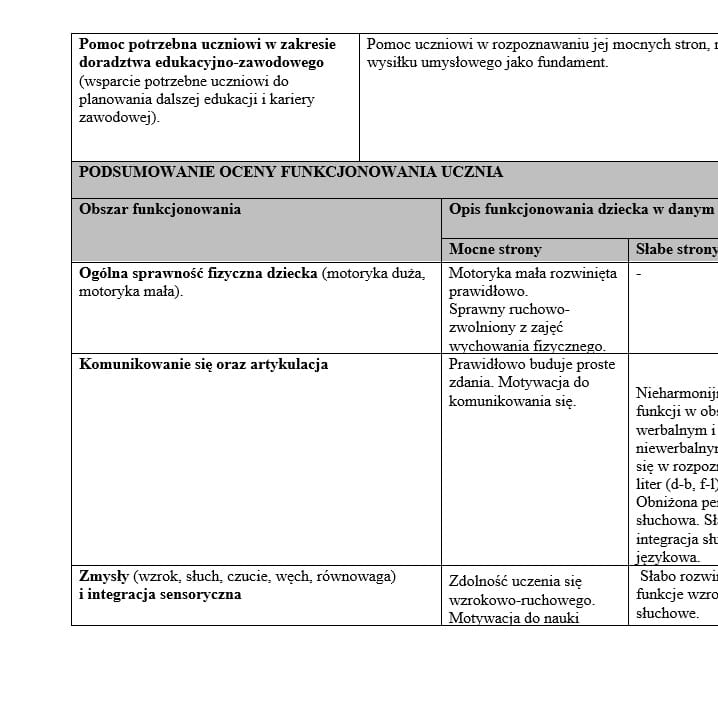 - wypełnione WOPFU dla ucznia z niepełnosprawnością w stopniu lekkim (6 str.)