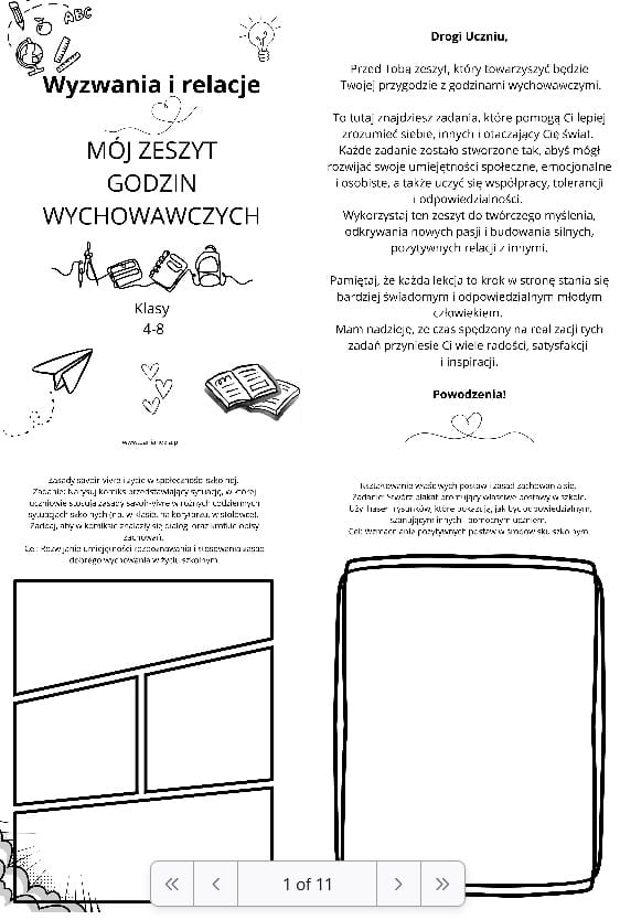 Zeszyt godzin wychowawczych „Wyzwania i Relacje” (PDF 42 strony).