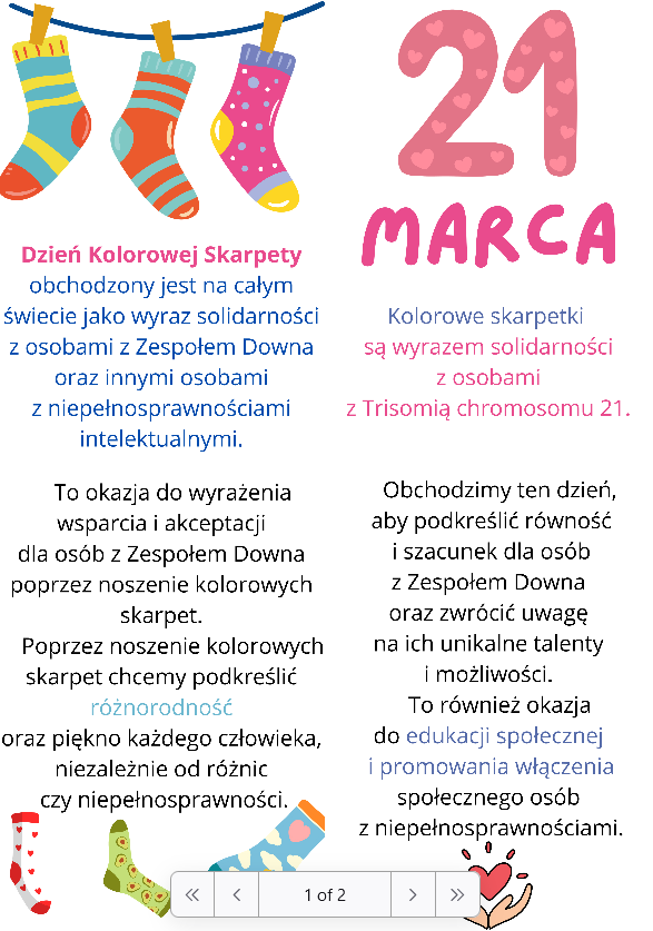 DZIEŃ KOLOROWEJ SKARPETKI, ŚWIATOWY DZIEŃ ZESPOŁU DOWNA- gazetka tematyczna